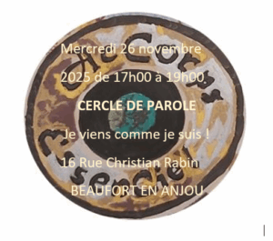 Le cercle de parole est un temps d’intériorisation, de rencontre avec soi, de mise en lumière de ce qui, dans mon quotidien, vient me chercher. L’autre est une main tendue qui s’offre à moi, un regard bienveillant qui me réchauffe et m’amène à ouvrir des portes restées fermées trop longtemps… Sur inscription uniquement au 07.68.93.06.62